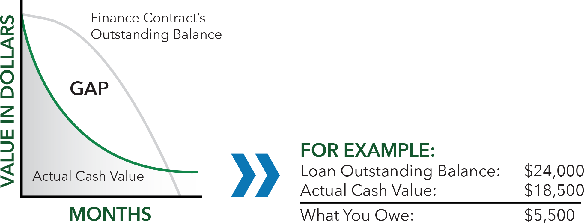 A "GAP" occurs when your insurance company's value of the vehicle is less than what you owe on your loan. The Premier GAP addendum amends the terms of your vehicle finance agreement to cover this difference.*